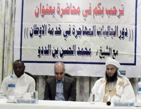 الشيخ محمد الحسن الددو يحاضر لجمعية المرأة عن:"نصرة النبي صلى الله عليه وسلم".
