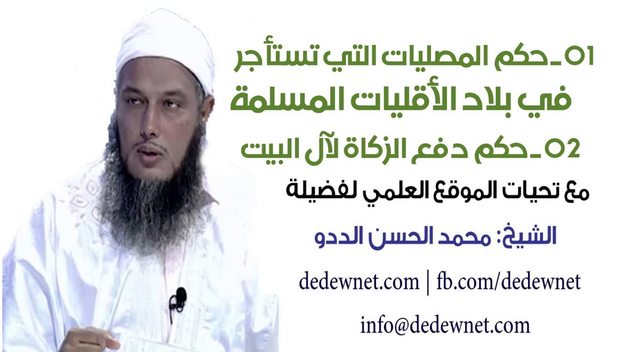 | الشيخ الددو يبين حكم المصليات المستأجر في بلاد الأقليات المسلمة، وحكم دفع الزكاة لآل البيت، |
